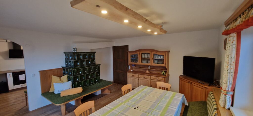 bietet Platz für 6 Personen. Ideal für Großfamilien von Urgroßeltern bis zum Urenkerl, oder Urlaub mit Freunden! Eine geräumige Küche, großes Wohnzimmer mit Kachelofen, Bad mit Dusche und Badewanne, 3 Schlafzimmer, 3WC und 2 Badezimmer. Diese Wohnung befindet sich im ersten Stock und enthält folgende Zimmer: